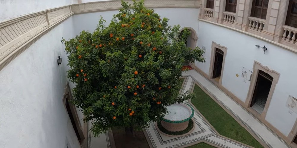 Al entrar al patio central, un hermoso naranjo y una fuente te reciben, el museo se divide en tres áreas: la casa principal, la casa posterior y el patio de honor.